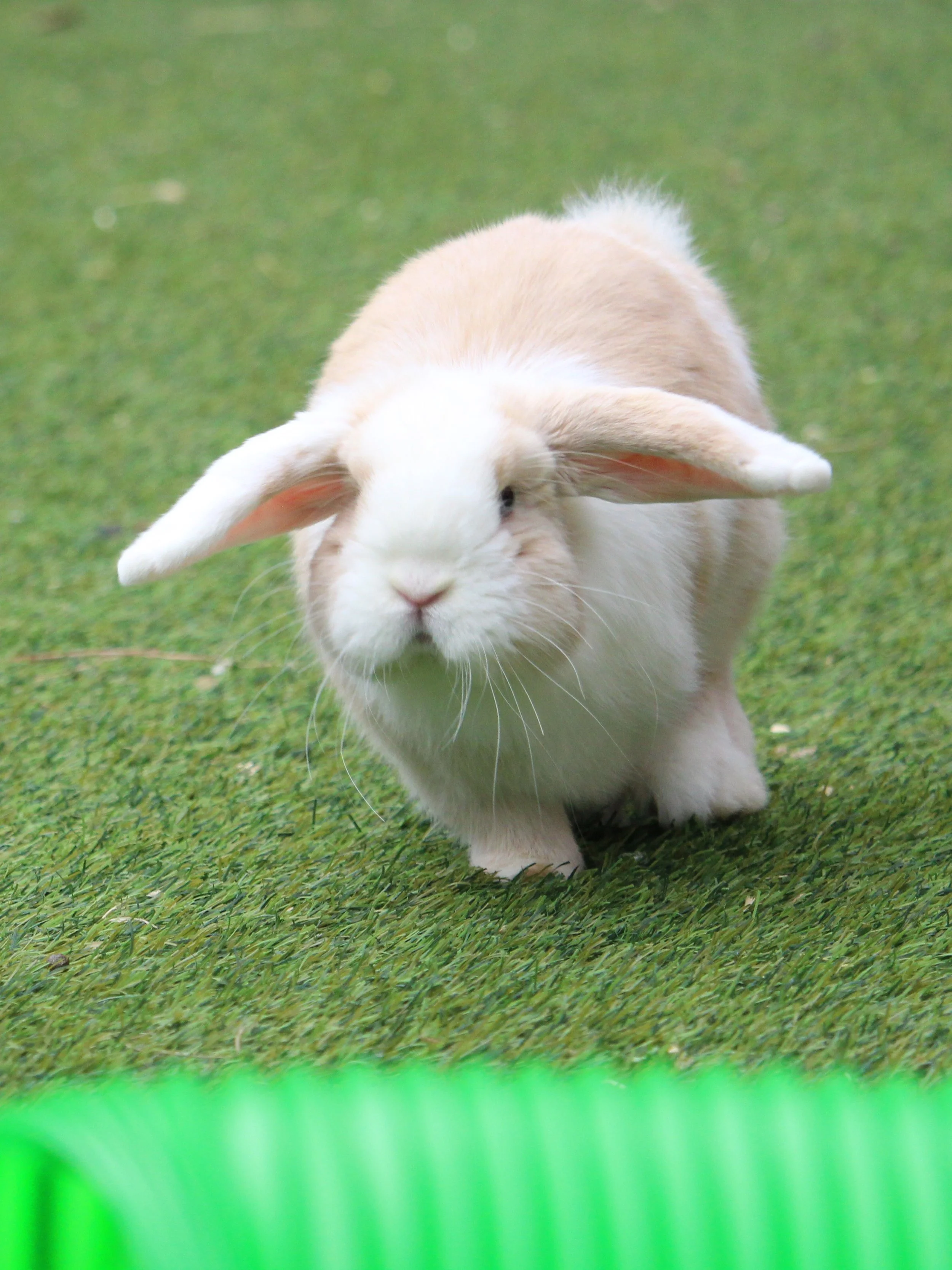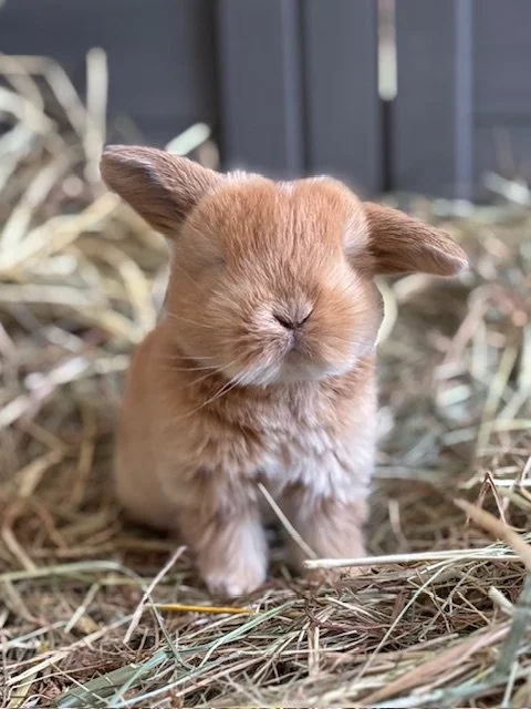 Personality: So far hes very chill, will certainly explore and bink about but loves to lay and take in his surroundings. The other buns are drawn to him for a cuddle.